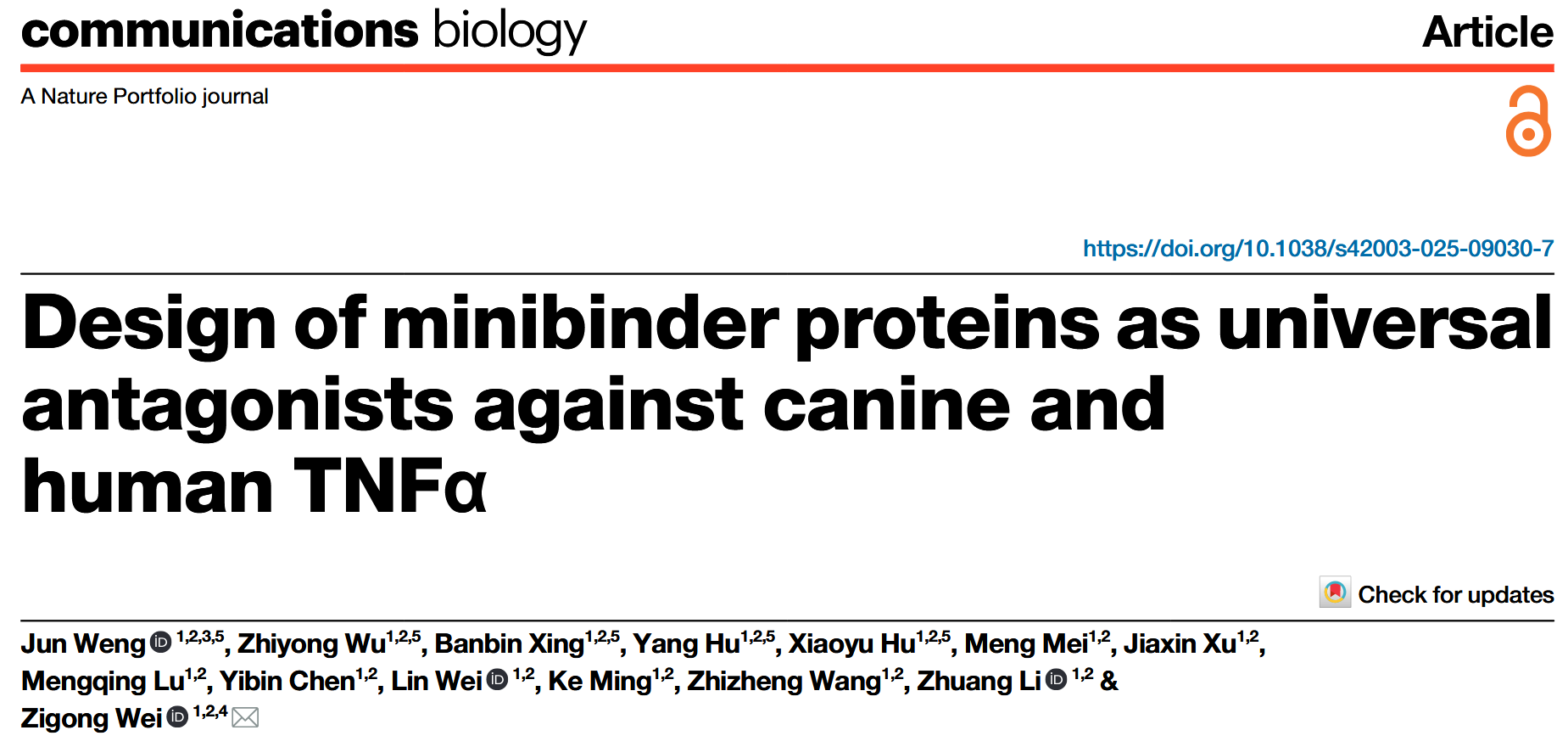 查看更多近期,湖北大学生命科学学院、药物高通量筛选技术国家地方联合工程研究中心魏子贡教授课题组在人工智能蛋白质设计和小分子药物设计方面取得系列进展。题为“Design of minibinder proteins as universal antagonists against canine and human TNFα”的文章发表在Nature子刊《Communications Biology》,基于人工智能蛋白质设计开发了跨物种通用的TNFα特异性mini-binder。肿瘤坏死因子α(TNFα)是一种强效的促炎因子,其过...