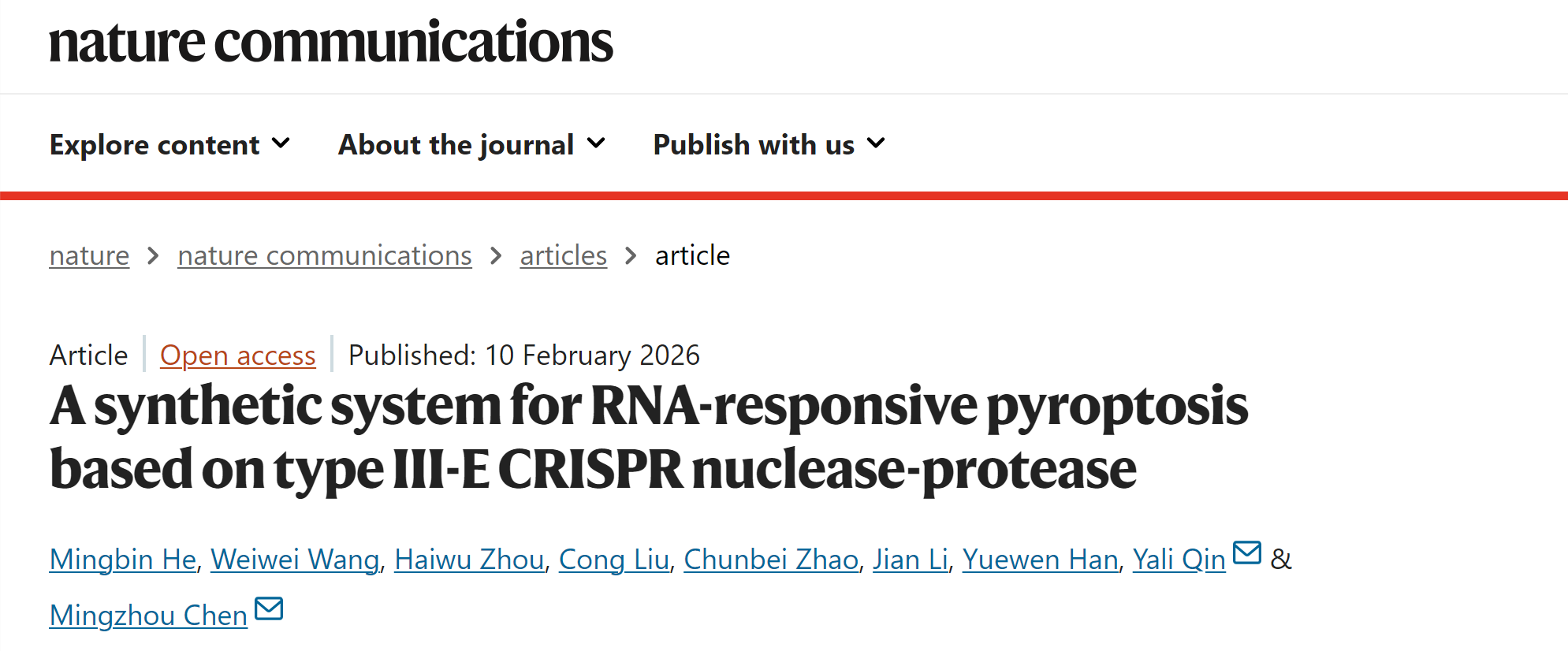 近日,湖北大学生命科学学院病毒学与疫苗研究中心陈明周教授团队在合成生物学领域取得重要研究进展,相关成果以 “A synthetic system for RNA-responsive pyroptosis based on type III-E CRISPR nuclease-protease”为题,发表于国际期刊《Nature Communications》。该工作利用合成生物学技术,成功构建了一种基于RNA响应的可编程细胞焦亡诱导系统——DAMAGE系统,为病毒感染、基因突变相关肿瘤及衰老相关疾病等“RNA异质性疾病”的精准干预提供了全新的策略。