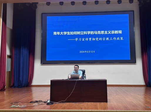 第二节课,由党委副书记袁勋进行党的宗教政策宣讲。他详细为大家介绍了马克思主义宗教观的基本理论和政策,教会学生如何去树立科学的马克思主义宗教观。