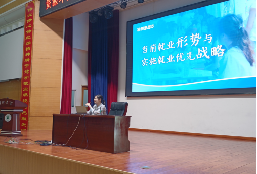 ,马菲讲师以“认清形势,科学规划”以主题,以当今就业人数数据为先导,从“当今形势总体稳定”、“仍存在就业压力”、“确保就业优先”、“着力拓宽渠道”四个方面展开。资环学子在课上掌握不少就业知识,了解获取就业信息的途径。
