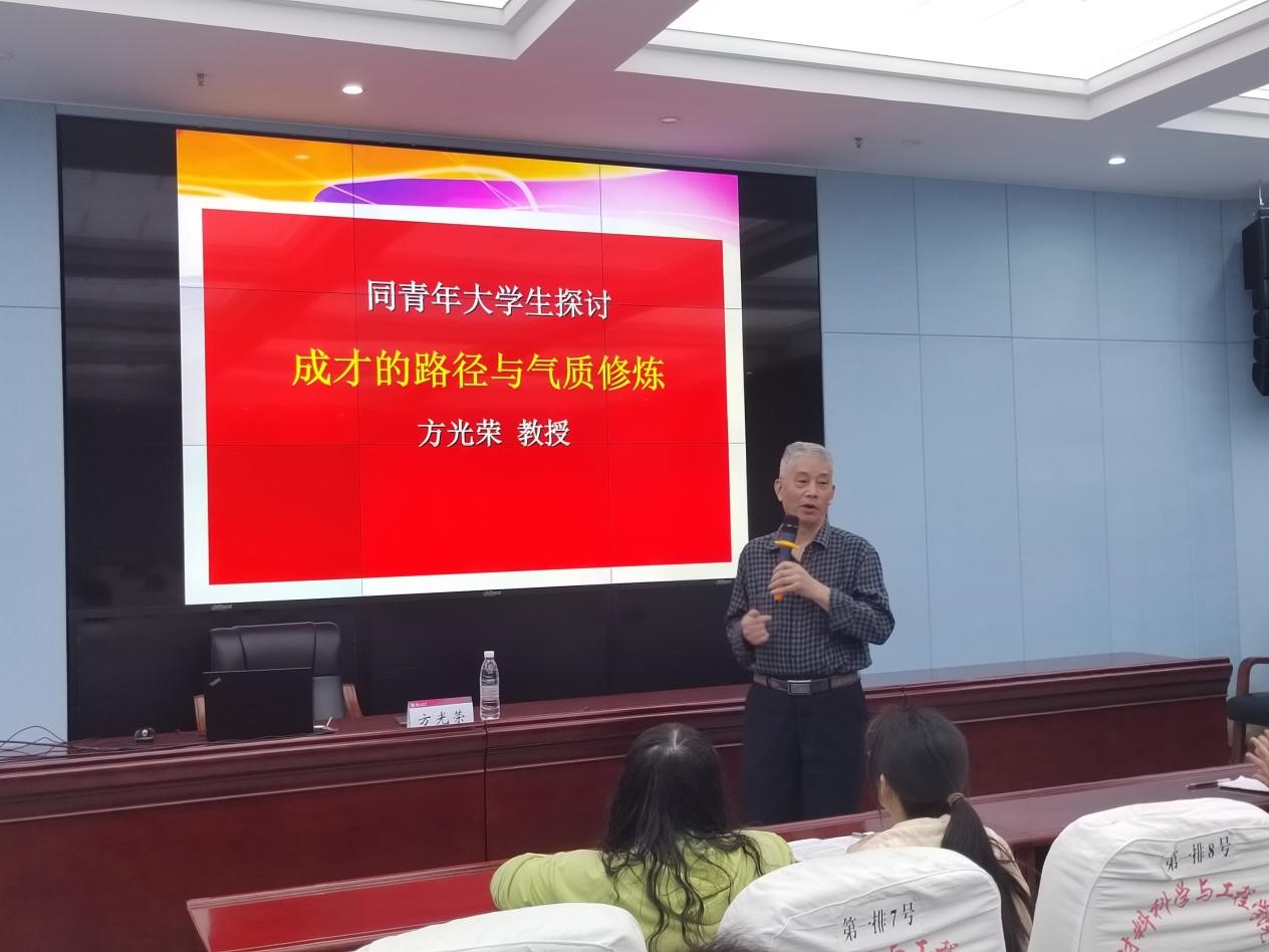 4月25日,湖北大学老教授协会负责人方光荣教授为学员们作《成才的路径与气质修炼》专题报告,向学员们介绍成才的基本路径与自我修养的建议。