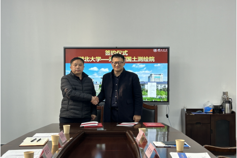 接下来湖北大学与湖北省国土测绘院签订了院校合作协议,黄月辉书记介绍了学院基本情况,梅新副院长介绍了学院的科研情况,测绘院于浩主任介绍了院内具体业务,王飞翼副院长介绍了科研项目的申报规则。最后双方就开展合作方面的具体事宜展开了进一步交流。谭文专院长表示,希望未来两院能继续加强交流合作,将企业与高校的优势相结合,在申报重大科研项目上寻求合作契机。