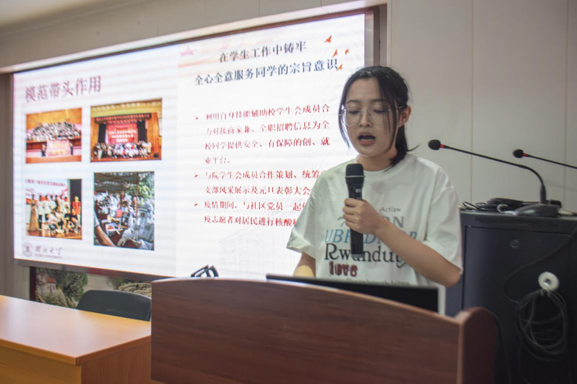 为深入推进学习教育常态化长效化,进一步增强党组织的凝聚力和战斗力,10月15日下午,资源环境学院生态学研究生党支部在学院一楼会议室顺利开展“红歌润心·共庆政治生日·趣学党史”主题党日活动,校组织部何斯婕老师、生态学研究生党支部全体党员,以及计算机学院、文学院、新闻传播学院、材料科学与工程学院、外国语学院等7个学院组织员参加。