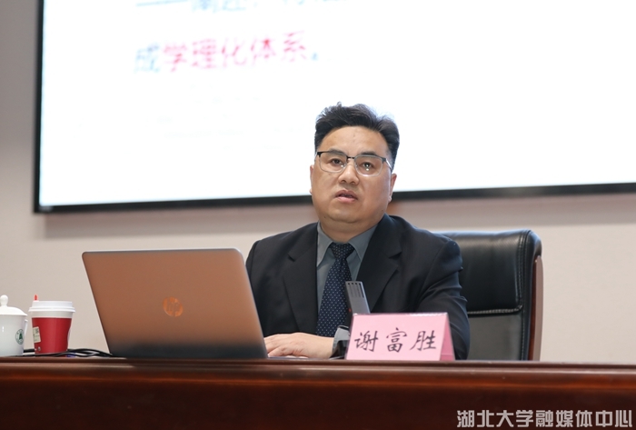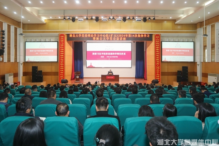 湖北省第十四届人大城乡建设与环境资源保护委员会副主任委员、湖北省新闻工作者协会主席向培凤,湖北美术学院党委常委、纪委书记张以林,黄冈师范学院党委常委、纪委书记胡娟,武汉书画家协会会长,中部集团董事长曾雪萍,中国人民大学部分在鄂校友,湖北大学在校校领导,全校中层干部(含挂职干部),民主党派负责人、无党派代表人士、侨联负责人,师生代表参加辅导报告会。校党委书记谢红星主持会议。