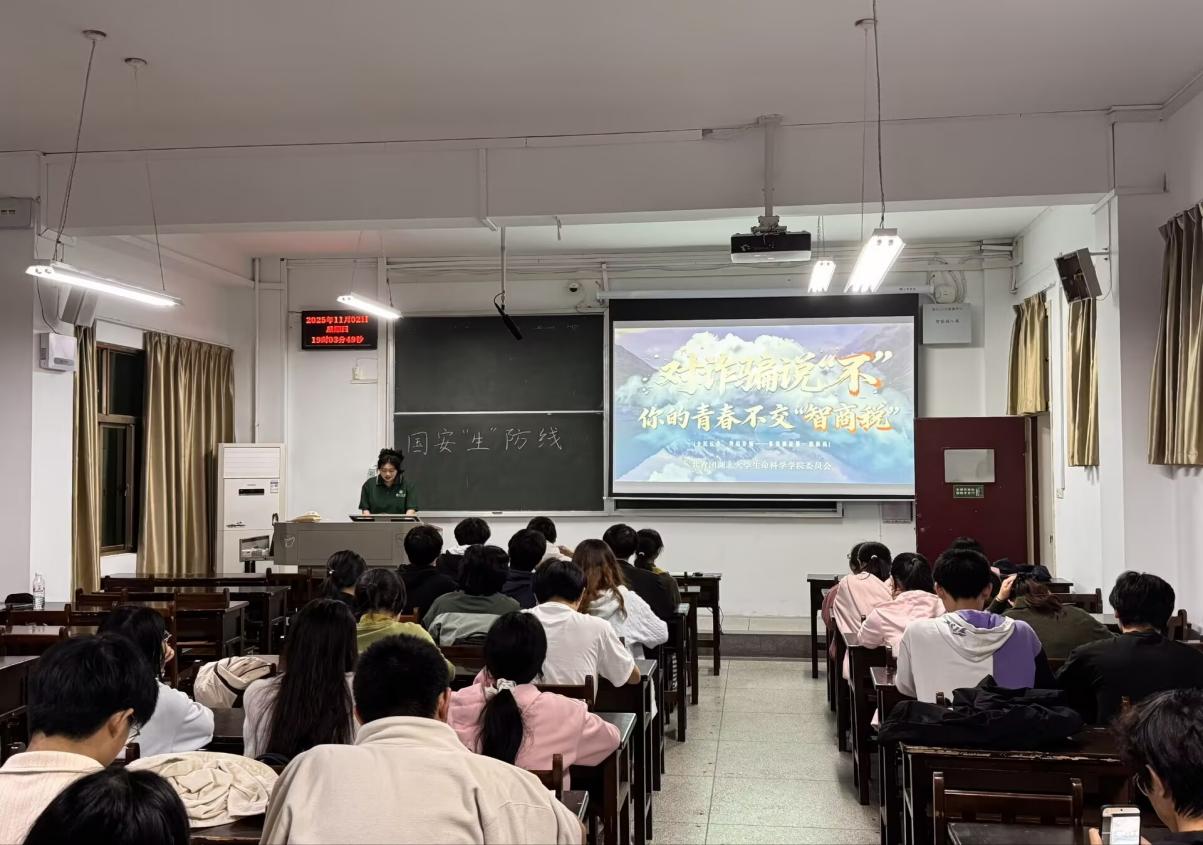 (文:李佳煊,彭婷,摄影:青年传媒中心 学生会)“一通陌生来电,可能让你积攒已久的生活费不翼而飞;一条不明链接,或许就能盗走你珍贵的个人数据……”11月2日,为了切实提升学生反诈防骗意识,守护好同学们的“钱袋子”,生命科学学院团委组织学生骨干利用班会时间深入各班级开展“对诈骗说不,你的青春不交智商税”主题宣讲。