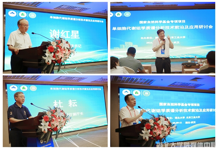 8月9日—11日,国家自然科学基金专项项目“单细胞代谢组学质谱分析技术前沿及应用”研讨会在汉举行。该项目由湖北大学刘志洪教授和北京工业大学汪夏燕教授联合申报,来自全国高校、研究院所和医院的近40位专家学者参加研讨。国家自然科学基金委化学科学部常务副主任杨俊林、副主任詹世革,湖北省科技厅副厅长杜耘,湖北大学党委书记谢红星等出席。