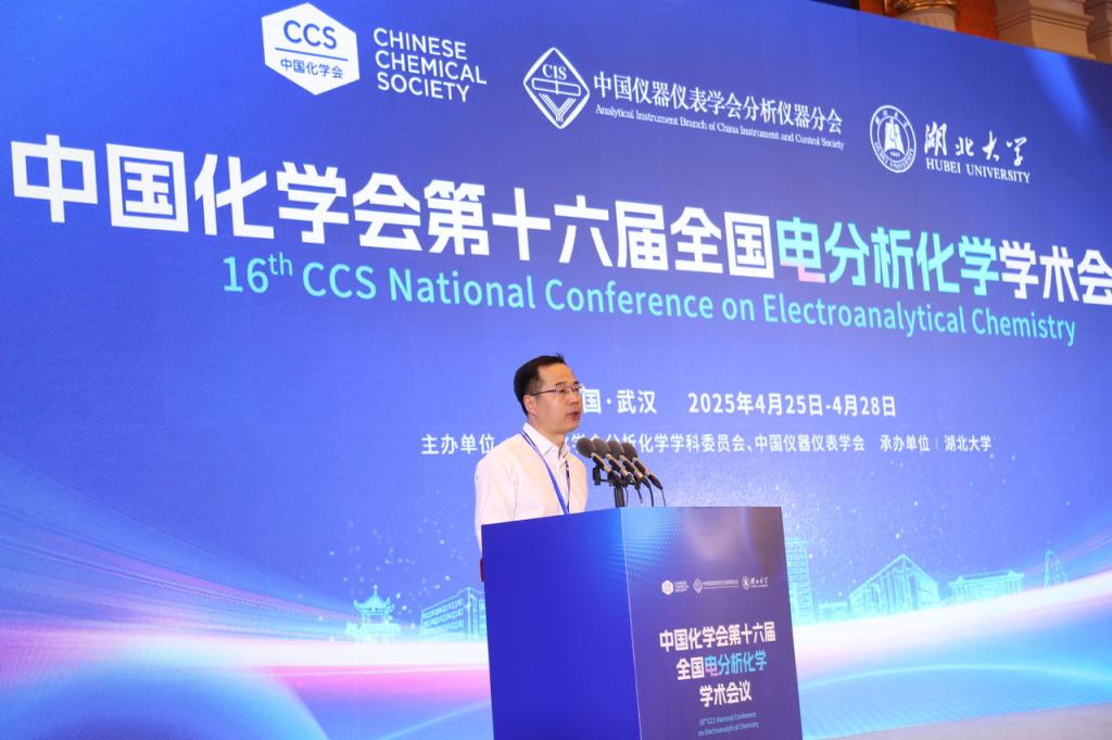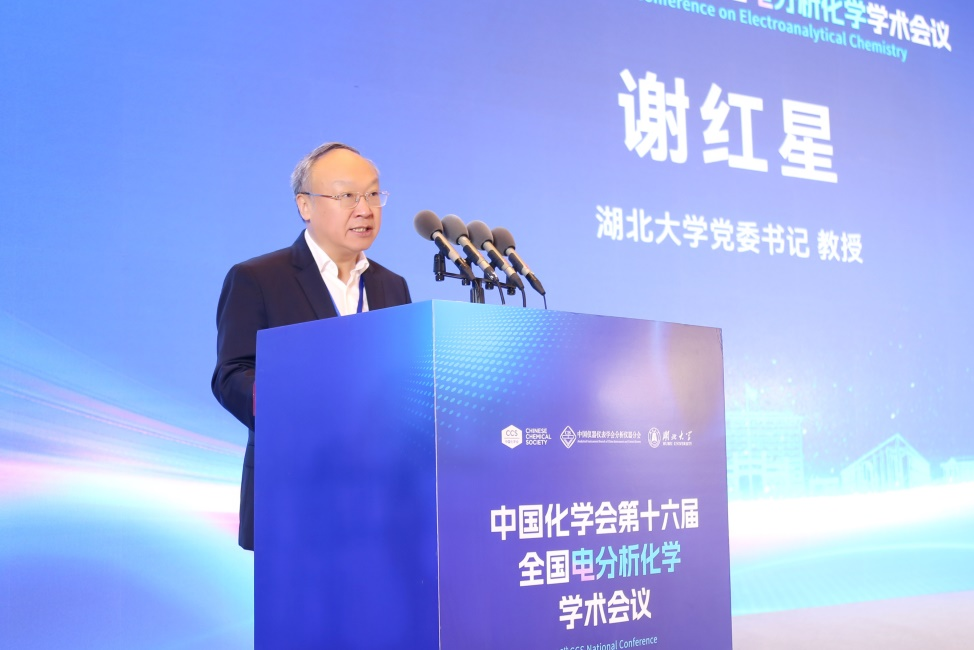 4月25日--28日,中国化学会第十六届全国电分析化学学术会议在武汉举行。会议由中国化学会、中国仪器仪表学会主办,湖北大学化学化工学院承办。中国科学院院士、中国科学院长春应用化学研究所研究员汪尔康,发展中国家科学院院士、中国科学院长春应用化学研究所研究员董绍俊,中国科学院院士、中国科学院长春应用化学研究所研究员杨秀荣,中国科学院院士、清华大学教授李景虹,国家自然科学基金委员会庄乾坤教授,湖北大学党委书记谢红星,党委常委、副校长刘志洪、李振等出席大会。