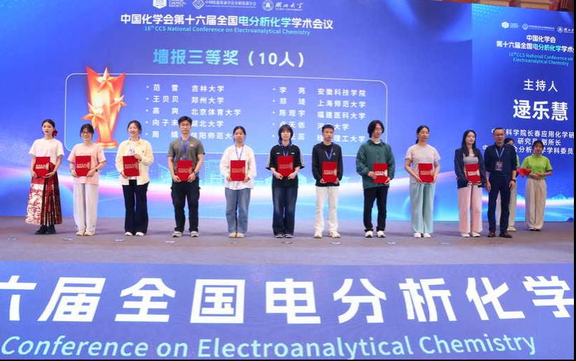 会议于4月27日圆满闭幕,闭幕式由中国化学会分析化学学科委员会主任逯乐慧教授主持。杨秀荣院士、鞠熀先教授及张修华教授为获奖同学颁发了优秀墙报奖。