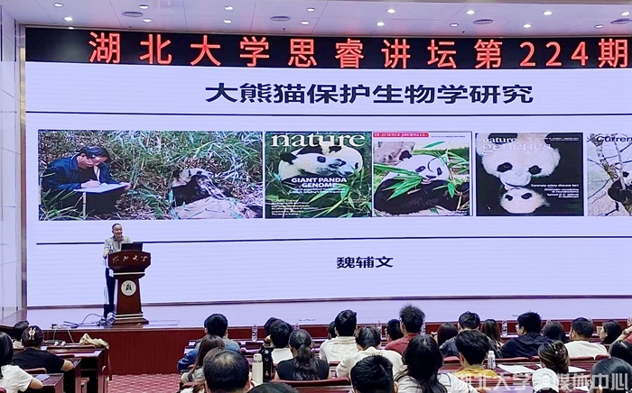 5月29日下午,我国著名保护生物学家、中国科学院院士、发展中国家科学院院士、欧洲科学院院士魏辅文教授做客湖北大学第224期思睿讲坛,为师生带来了一场题为《大熊猫保护生物学研究》的专题报告。校党委常委、副校长刘志洪主持并致欢迎辞,资源环境学院领导班子和200余名师生代表现场聆听。
